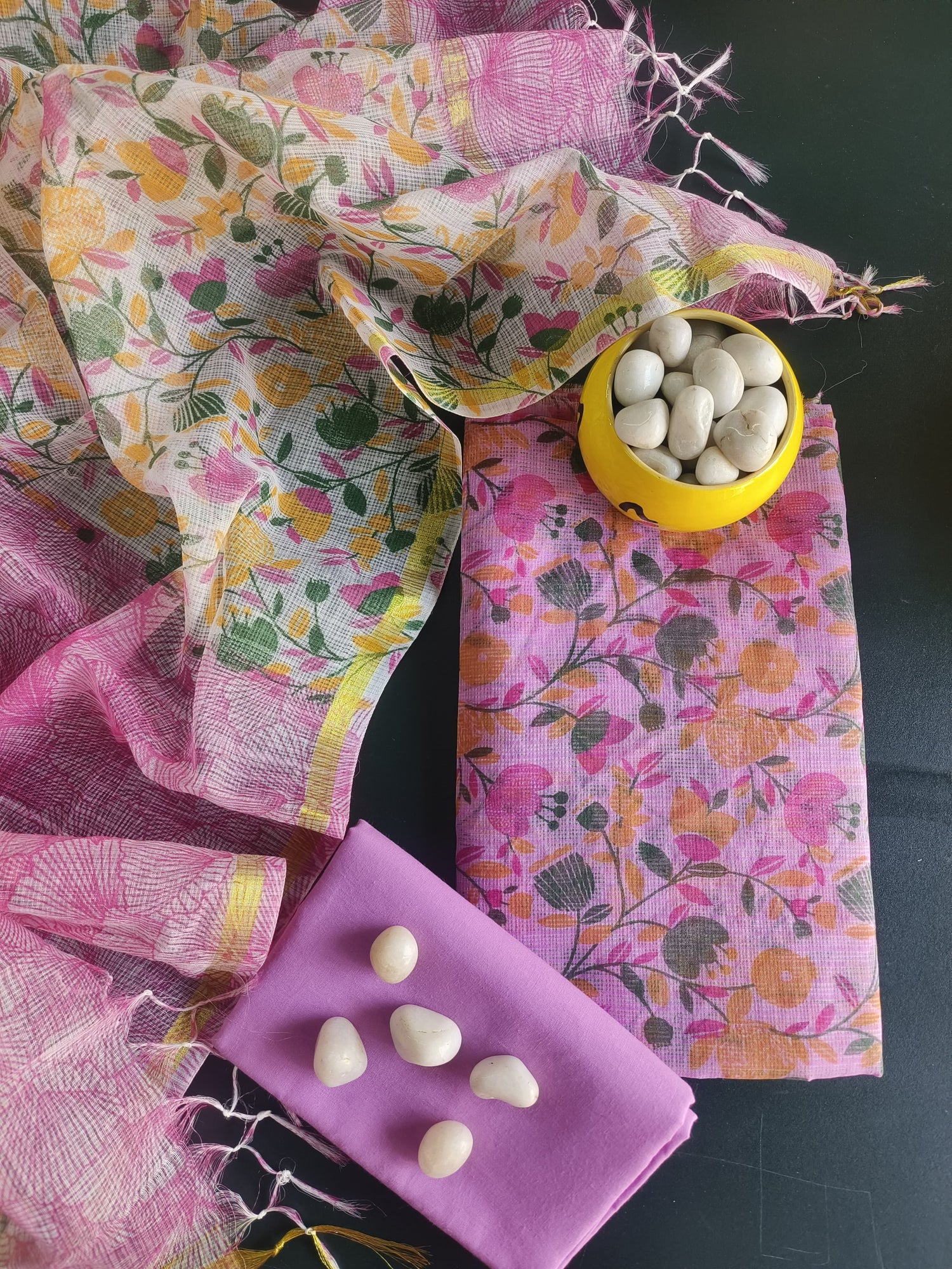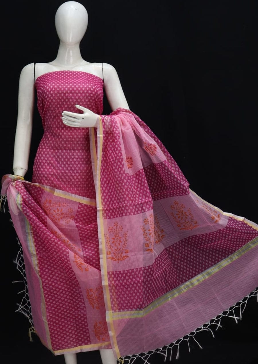 Bloom Bliss Kota Doria Cotton Dress Material with Bottom