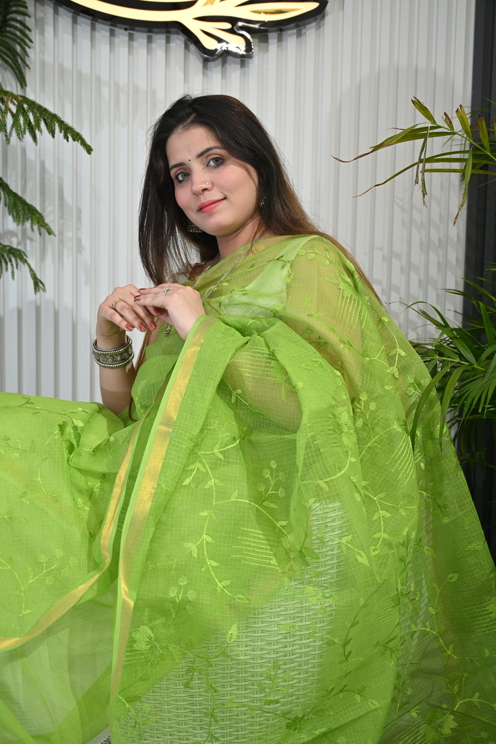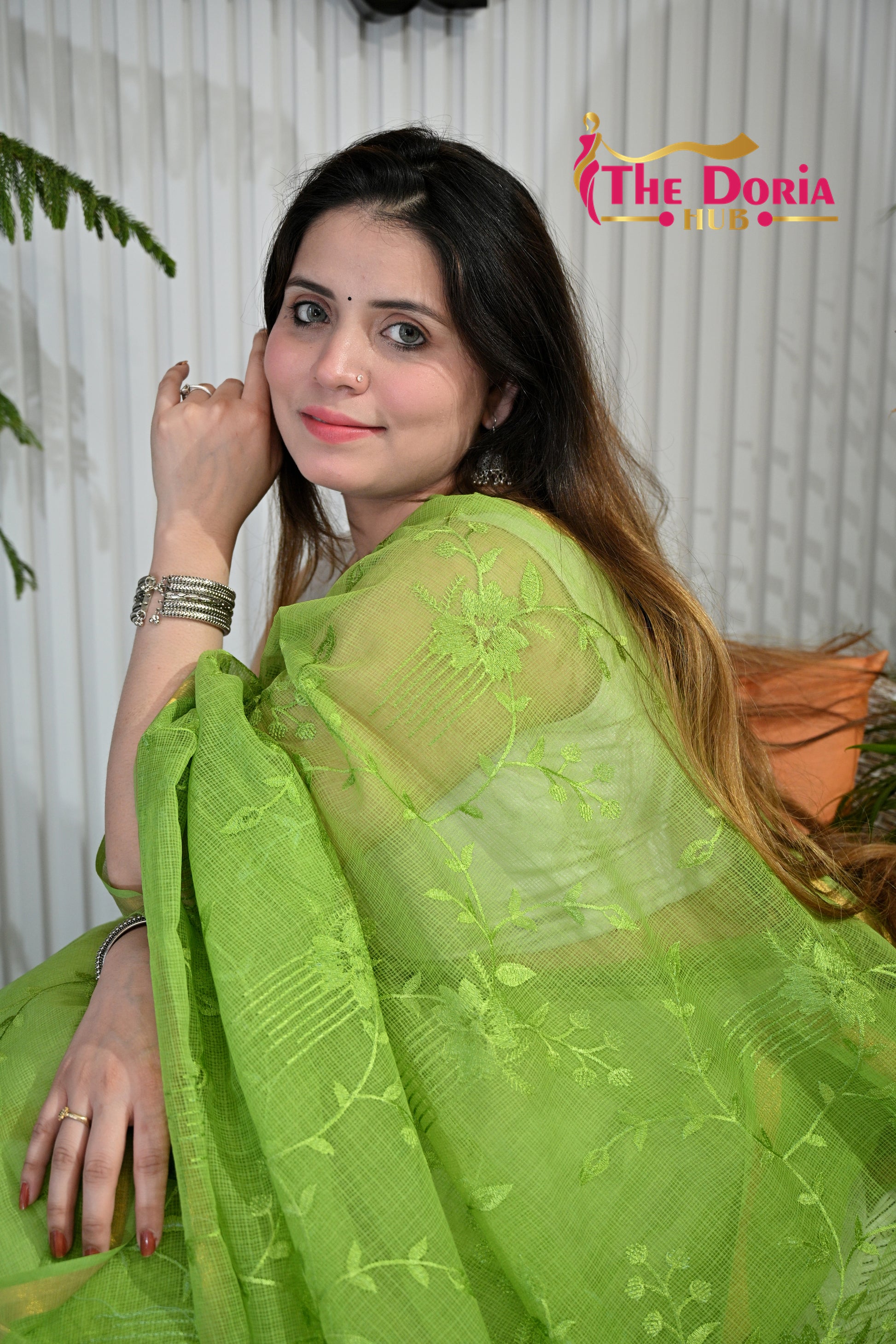 Embrace the sophisticated charm of this exquisite saree, crafted from authentic Kota Doria Cotton. Celebrated for its signature square-check weave (khats), sheer lightness, and superior breathability, this fabric ensures comfortable and graceful all-day wear.