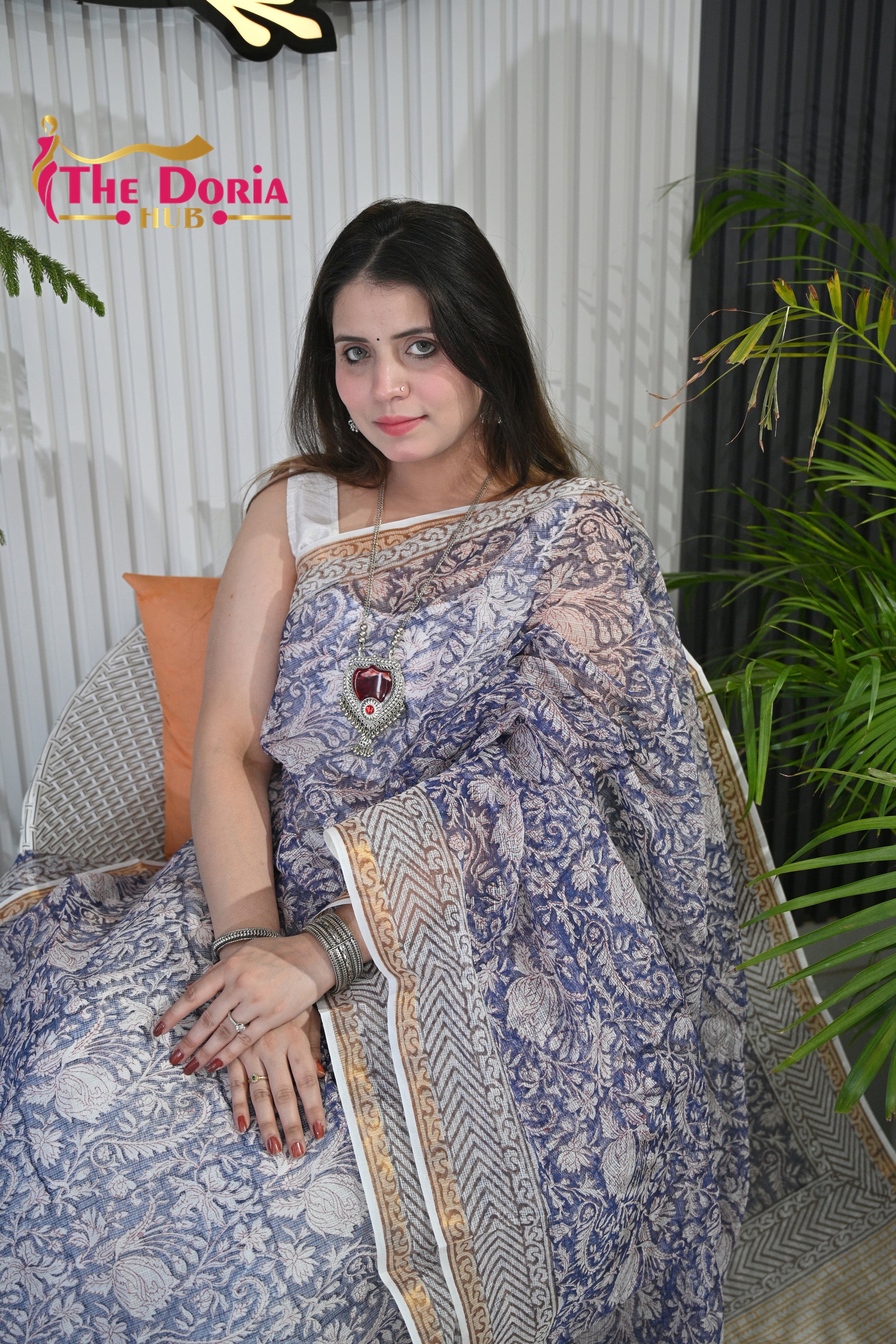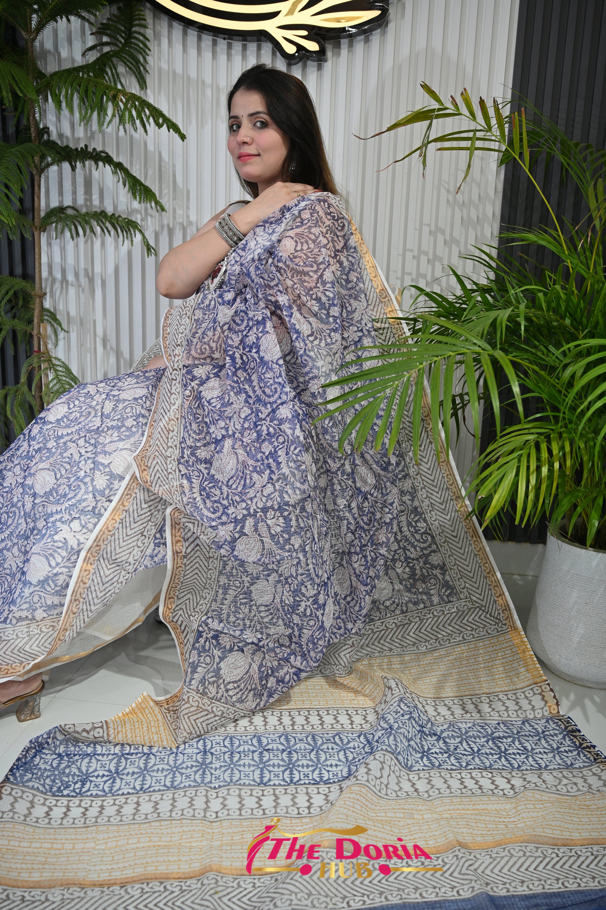 Indigo Floral Kota Doria Saree